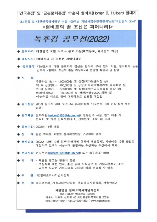<헐버트의 꿈 조선은 피어나리!>에 대한 독후감 공모전